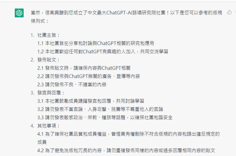 以下是中文最大ChatGPT-AI詠唱研究院 社團版規